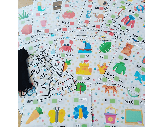 Esta atividade é um bingo de sílabas. Vem com 12 cartões de bingo com sílabas simples e 14 de sílabas complexas, um total 26 cartões e 156 sílabas.