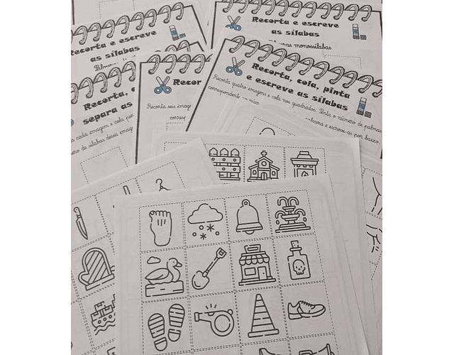 Vem com 136 imagens para colar nas respetivas folhas base, separadas em palavras com sílabas simples e complexas.
