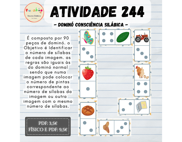 Atividade 244 - Dominó Consciência Silábica - Físico e PDF