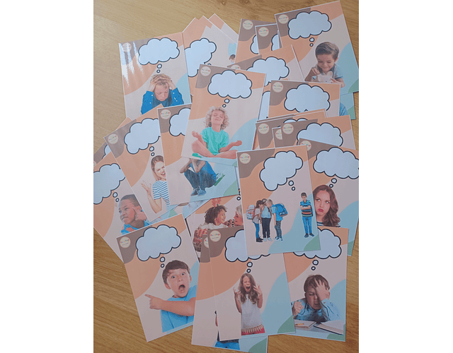 Esta atividade tem como objetivo trabalhar o pensamento reflexivo através de 40 imagens reais que sugerem pensamentos de diversas pessoas em diversas situações.