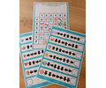 - 2 quadros e 12 figuras para construir através de um código de quantidades e cores.