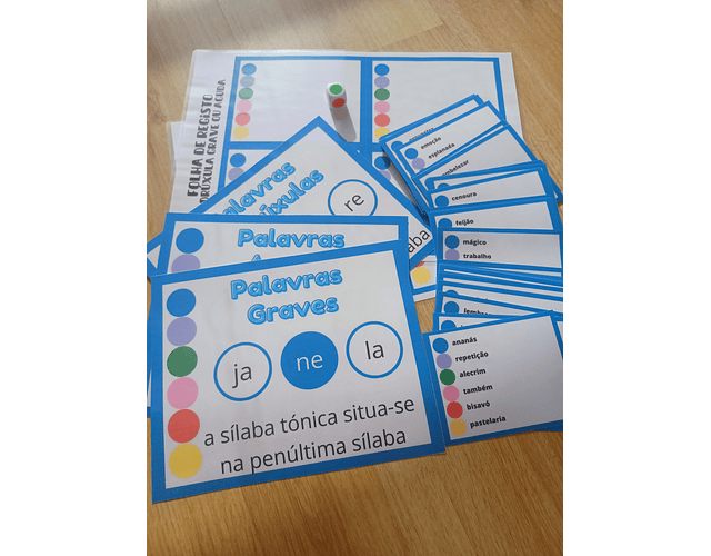 Esta atividade é composta por 46 cartões trivial para trabalhar a classificação de palavras em relação à acentuação e posição da sílaba tónica através de um dado de cores e 2 folhas de registo.
