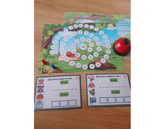 Esta atividade é composta 1 jogo de tabuleiro que as crianças irão percorrer à medida que forem decifrando qual a palavra com X sílabas e X letras, entre as imagens de cada cartão.