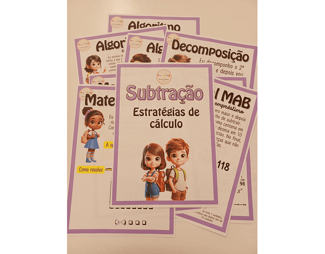 Esta atividade contém 15 cartazes da subtração onde mostra várias estratégias de cálculo que podem ser utilizadas para resolver uma subtração com a explicação e um exemplo.