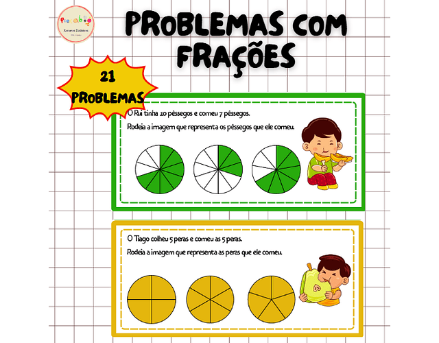 Esta atividade contém 21 problemas visuais para a iniciação à aprendizagem das frações. Ajuda bastante na compreensão pois terão sempre os modelos visuais.